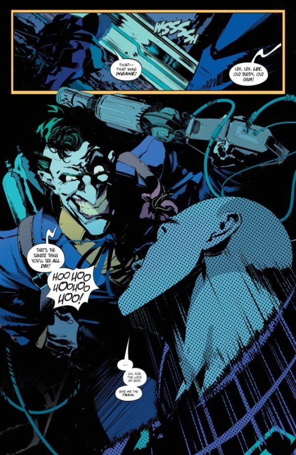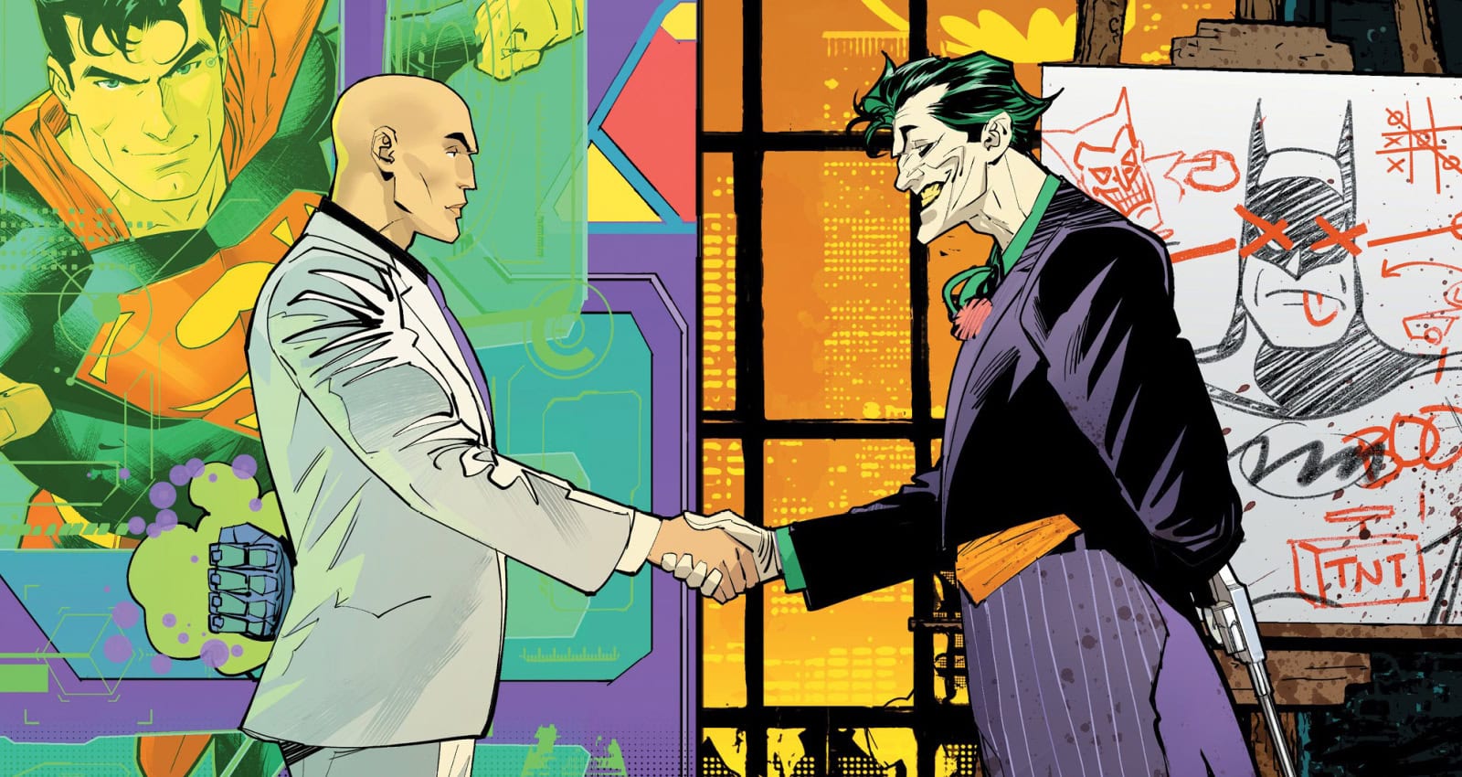 Lex Luthor and the Joker have joined forces once again, but this uneasy alliance hinges on a crucial outcome: the final defeat of both Batman and Superman. Why else would the most brilliant criminal mind of our time and the Clown Prince of Crime team up? Well, the answer will surprise you… and them! Betrayal abounds, terror intensifies, and a major surprise is in store for the Dark Knight and the Man of Steel in part one of “The Merger”.