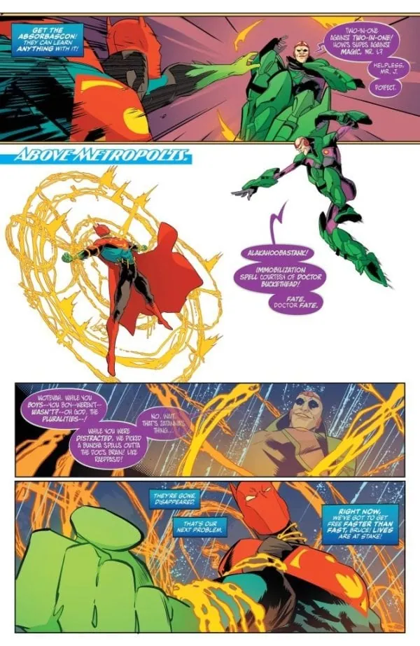 FUSION VS. MERGER! The combined might of Batman and Superman faces off against the combined might of The Joker and Lex Luthor in the knock-down, drag-out brawl of a conclusion to The Merger! Someone is about to get their not-too-distant past kicked!