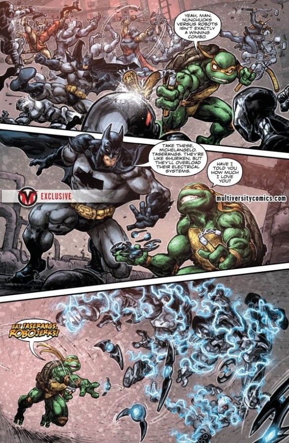 DC Comics and IDW Publishing release the fifth issue of Batman/Teenage Mutant Ninja Turtles III this Wednesday, and you can take a look at a preview of the issue here…
