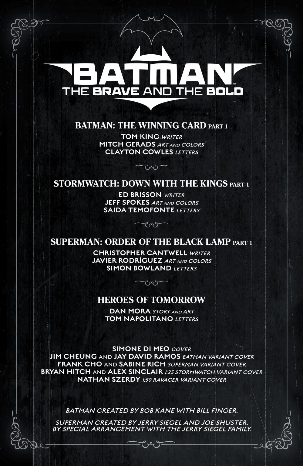 Coming off the spectacular success of Batman – One Bad Day: The Riddler, the Eisner Award-winning team of Tom King and Mitch Gerads reunite for a horrifying four-part retelling of the first bloody clash between The Joker and the Batman. A tale of loathing, lies, and laughter, this may be the most frightening Joker story in a generation. Everyone is going to be shocked. Everyone is going to be talking about it. The Justice League may be gone, but its enemies aren’t. Who’ll protect the world from the worst of the worst? Ed Brisson and Jeff Spokes pick up the story started in the Wildstorm 30th Anniversary Special as Director Bones and his new covert StormWatch team travel the globe on black-ops missions to take super-powered weapons of mass destruction off the board. But this is StormWatch, and as always, not all is as it seems. “Down with the Kings” starts here! Superstar artist Dan Mora (Batman/Superman: World’s Finest, Detective Comics) makes his writing debut kicking off a new series of Batman Black & White short stories. In a Gotham City overrun by the cybernetic henchmen of The Joker, the only person who can save us is the mysterious motorcycle-riding, bat-costumed hero of urban legend…