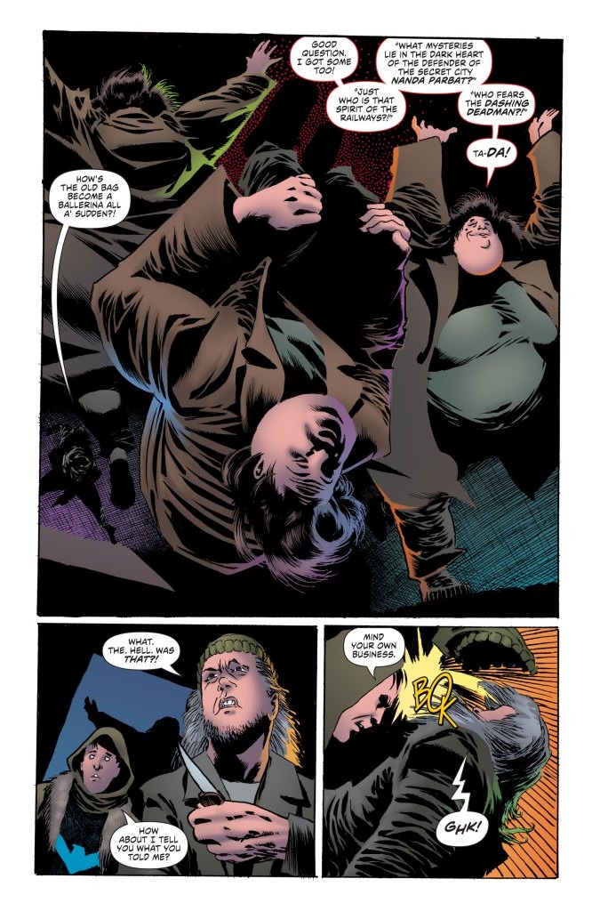 Nightwing and Deadman continue their rail-ridin’ odyssey and find themselves face-to-face with a terrifying new foe. Booster Gold’s adventures across time and space have delivered him to an alternate future inhabited by dinosaurs—but this alternate reality needs protectors, and it has them in the form of the allnew, all-different Jurassic League! In the finale of “The Poison Within,” Artemis’s attempts to return home are blocked by the anti-Amazon agents of AXE! Batman and Guy Gardner delve into a realm of high strangeness that is truly out of this world as they confront the grey alien that has crash-landed in Gotham. And last, but far from least, Hayden Sherman dazzles with a brand-new Batman Black & White story that needs to be seen to be believed.