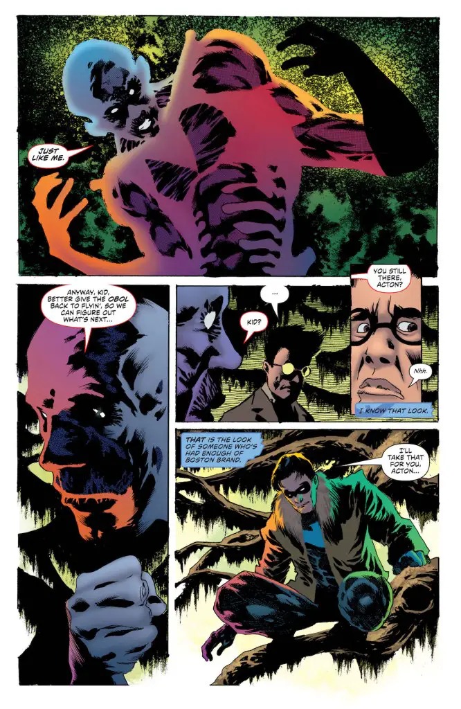 Nightwing and Deadman’s journey down long-forgotten circus paths begins to reveal answers… but they might wish it hadn’t! Booster Gold realizes getting everyone to agree on a perfect timeline is easier said than done! Batman and Guy Gardner face the secrets of the universe! And finally, our hard-hitting Question story begins as Renee Montoya finds herself under attack as both the commissioner and the Question!