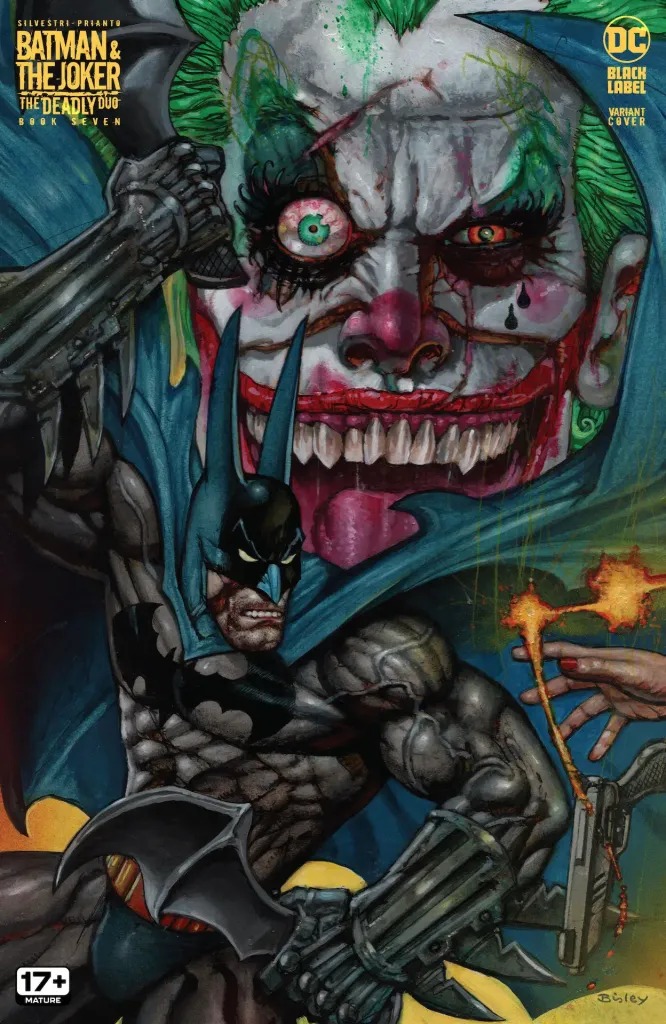 Batman and the Joker have fought across streets, rooftops, railways and caverns, against horrors beyond of their wildest nightmares. Deep underground, witnesses to an undead wedding from Hell, they finally go up against their bitterest enemies: each other! Can the Dark Knight and the Clown Prince of Crime save Commissioner Gordon and Harley Quinn, or will the flames of their reignited rivalry consume all? Find out, detail by bloody detail, in the epic conclusion to Marc Silvestri’s dark and brutal Gotham opus. This oversized finale clocks in at 31 beautiful and horrifying story pages.