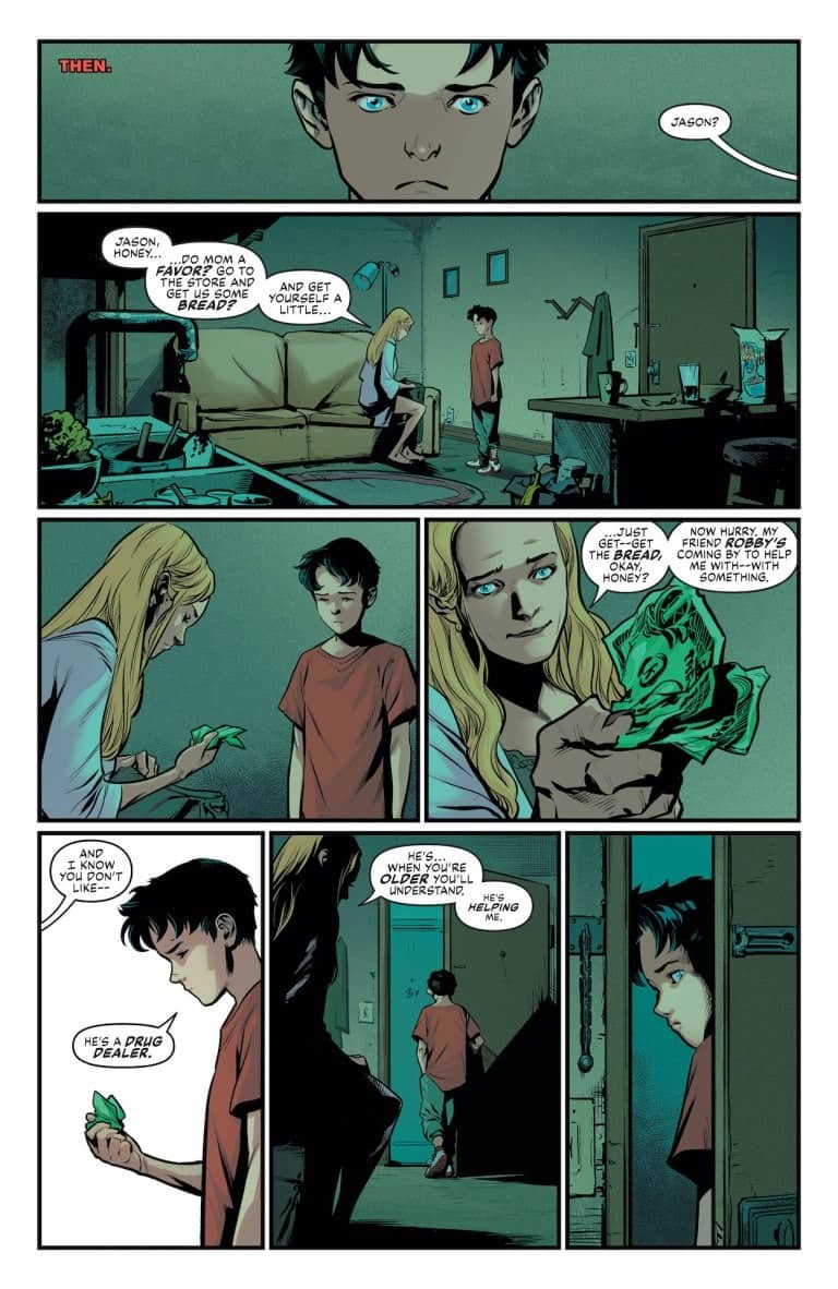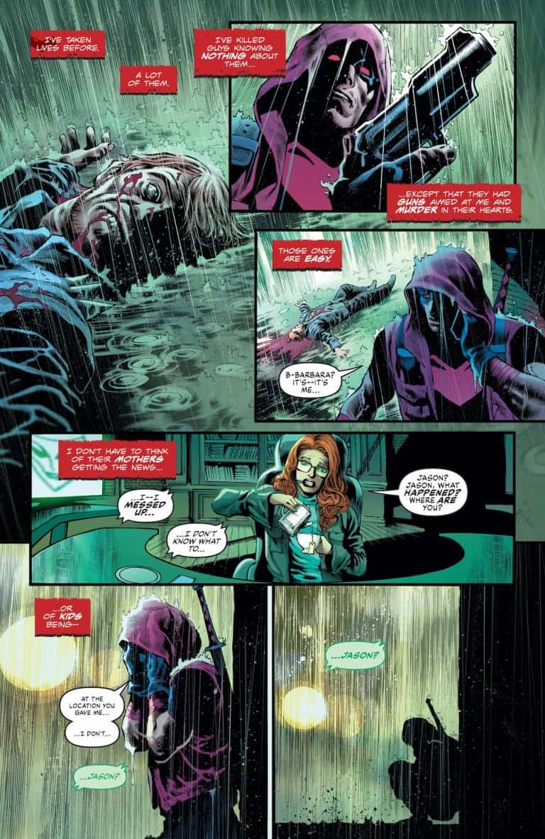 Then, in chapter two of Matthew Rosenberg and Ryan Benjamin’s senses-shattering tale, Cole Cash earns his pay as personal bodyguard to billionaire Lucius Fox, but what led him to Gotham in the first place? How does the mysterious HALO Corporation play into it all? And which Bat-Family character does he have an unfortunate meeting with in this chapter?