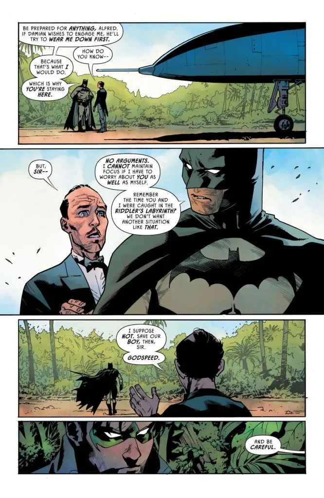 ALL ROADS LEAD…TO LAZARUS ISLAND. Batman has been on a breakneck journey throughout the DC Universe, from Wayne Manor to the House of Secrets and back again…but where there are clues there is a trail, and the qworld’s greatest detective has followed this particular trail back to where he and Superman began this journey: Lazarus Island. With an entire island and army at Damian Wayne’s disposal, does Batman stand a chance? We’ll give you a hint: NO!
