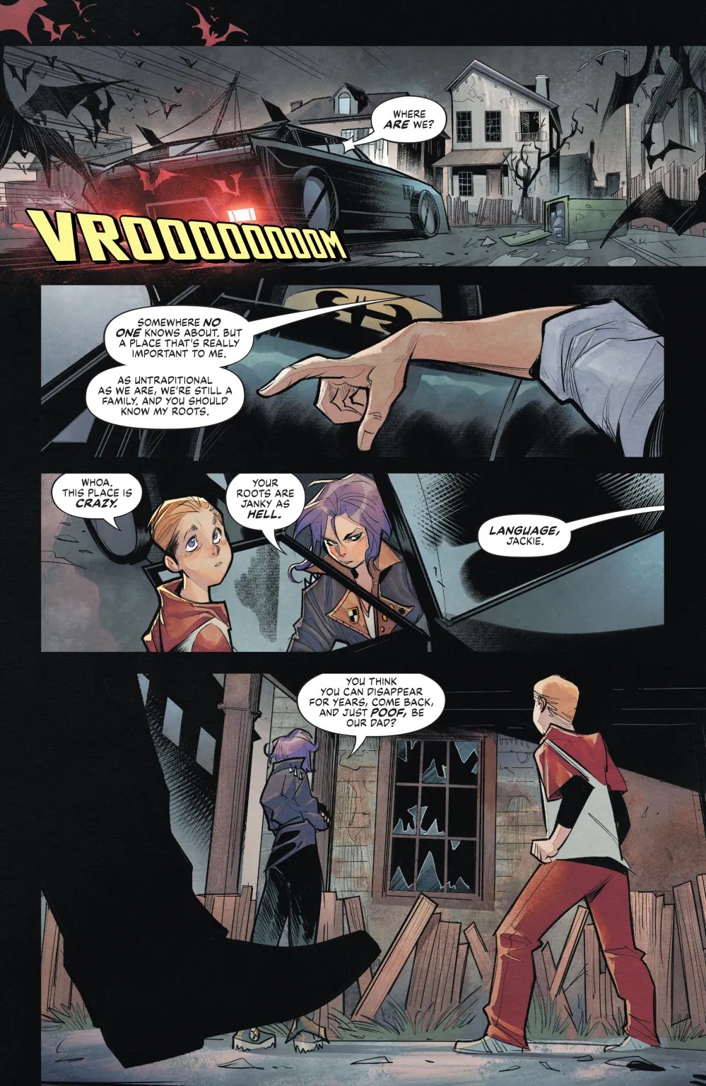 Youth in revolt! Spinning out of the runaway hit Batman: Beyond the White Knight comes an unforgettable coming-of-age super villain tale starring the children of Harley Quinn and The Joker! When the rebellious twins run away in a stolen Batmobile, only Joker Jack Napier’s quickly fading hologram has any hope of getting them home safely and keeping them out of the family business. But a life of crime isn’t the only temptation young Bryce and Jackie are facing: the kids uncover a dark secret that could bring their dad back to life for good! With a wild array of Batman’s former enemies and allies on their tails, will the kids succeed in reviving the Dark Knight’s greatest foe? Find out as Jackie and Bryce take center stage in the White Knight Universe!