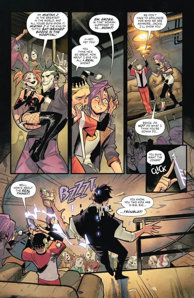 The Jokerz return! Inspired by the exploits of the Clown Prince of Crime, this street gang is ready to take Neo Gotham by storm. But first they need some new blood…the children of the Joker! Will Jackie and Bryce take their rightful place in the criminal underworld? Not if their mother, Harley Quinn, and her new ally, Neo-Joker, have anything to say about it!