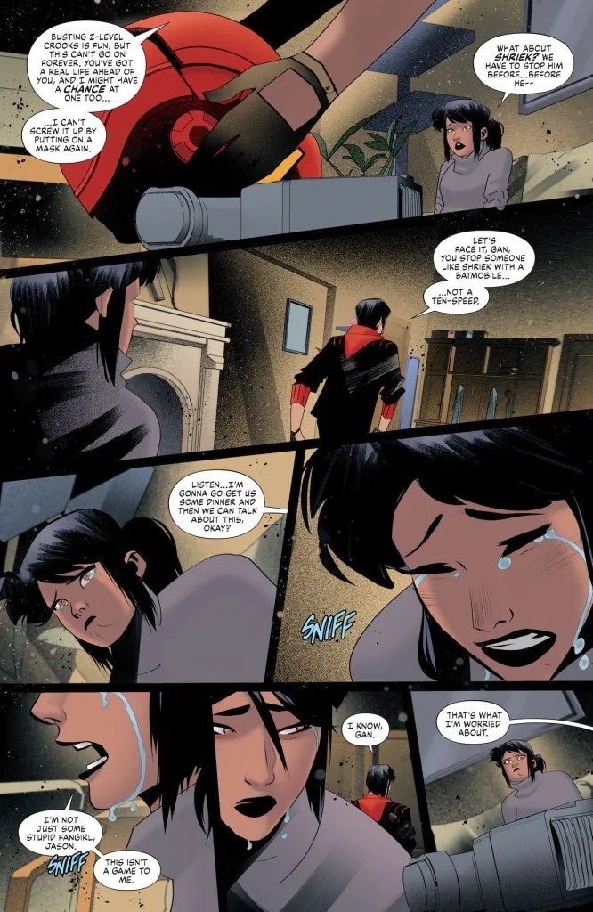 After being reluctantly recruited to bring justice to the East Backport neighborhood of Gotham, Jason Todd is back in the hero business! With an all-too-eager sidekick, Gan, by his side, he’s on the road to becoming one of the good guys again. And after all the damage Bruce Wayne did to his childhood, he’s hell-bent on creating the ultimate Robin, no matter the cost. But when the new dynamic duo’s first challenger comes calling, will they be up to the task? Shriek is ready to turn up the stereo and blow our heroes away!