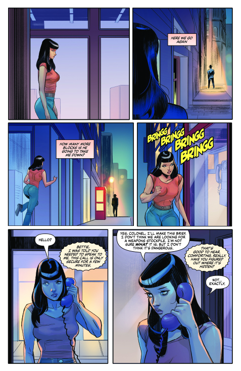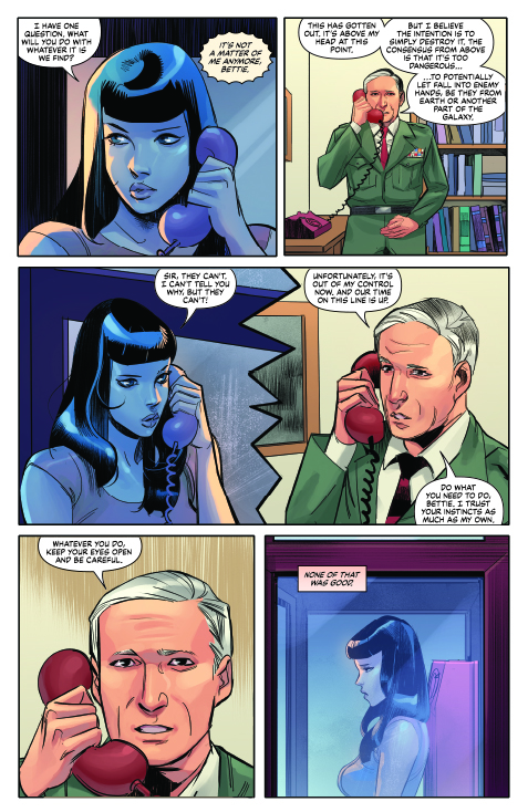 Bettie Page: The Alien Agenda #5 goes on sale on July 13th, priced $3.99.