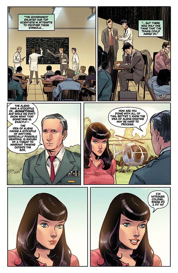 Get ready for an out of this world adventure with pinup icon Bettie Page this week as Dynamite Entertainment collects Bettie Page: The Alien Agenda in trade paperback form; check out the official preview below…