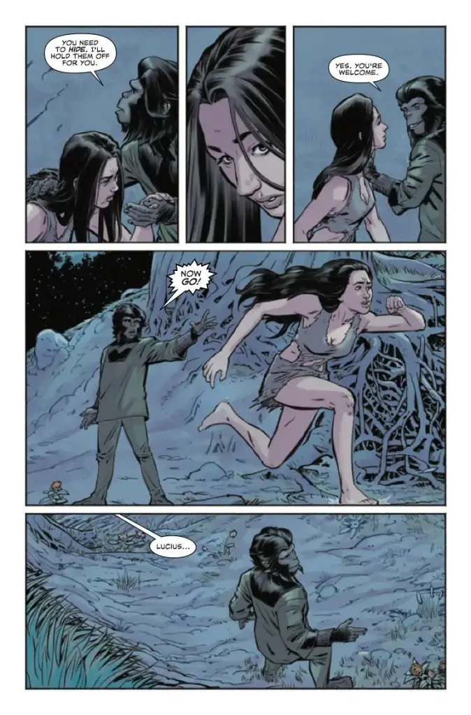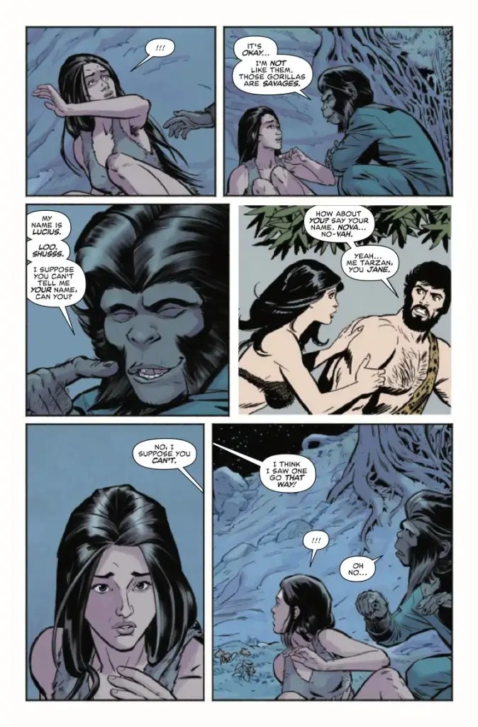 INTO THE FORBIDDEN ZONE! In a hostile world run by aggressive gorillas, scientists Cornelius and Zira are the only apes alive who see value in the mute, dumb human race—but even they know human capabilities have severe limits. So when their nephew Lucius goes missing, it is with great trepidation that they turn to a human ally, a young woman who will someday earn the moniker “Nova”… Steeped in a love for the classic tales, Marc Guggenheim and Álvaro López’s series will take the Planet of the Apes legacy to explosive new heights—and it all starts here!