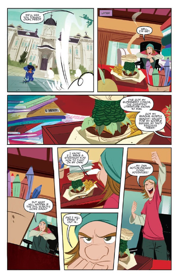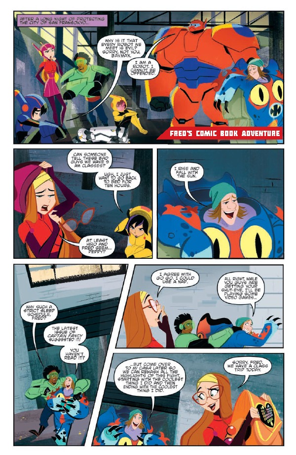 Based on the hit Disney Channel series! Hiro, Honey Lemon, Wasabi and Go Go are all off on a class trip for the day-leaving Fred at home to defend San Fransokyo! He’d better come up with a strategy, just in case-and what better way to do that than by writing his very own Big Hero 6 comic book!