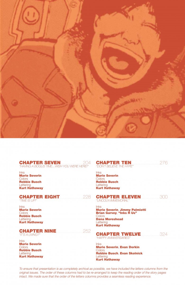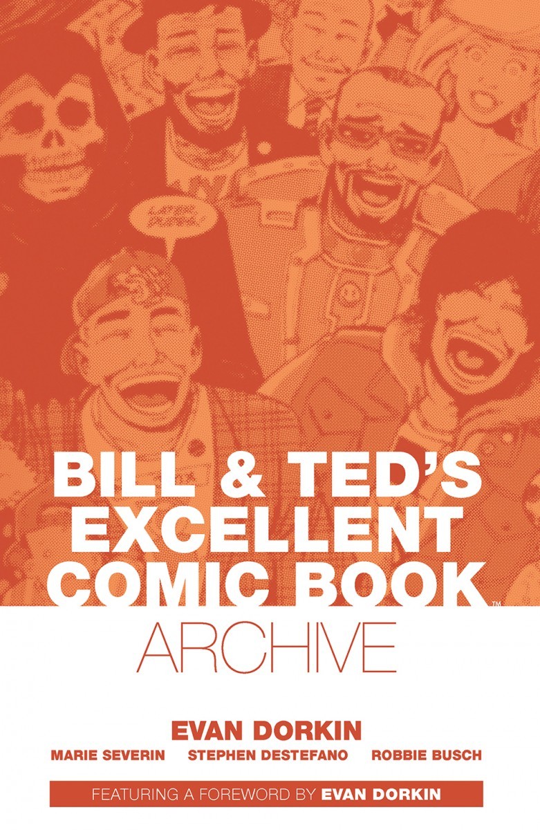 The most non-heinous Eisner Award-nominated series, Bill & Ted’s Excellent Comic Book, has returned! This archive edition contains Evan Dorkin’s (Milk & Cheese, Beasts of Burden) entire 11-issue series run on Bill &Ted’s Excellent Comic Book and the Bill & Ted’s Bogus Journey adaptation completely remastered and collected in a prestigious, full-color softcover at an all new value price! Experience the comic like never before with all-new bonus features, including original artwork, art commissions, alternate versions of previously published artwork, and behind-the-scenes process pieces from Evan Dorkin.