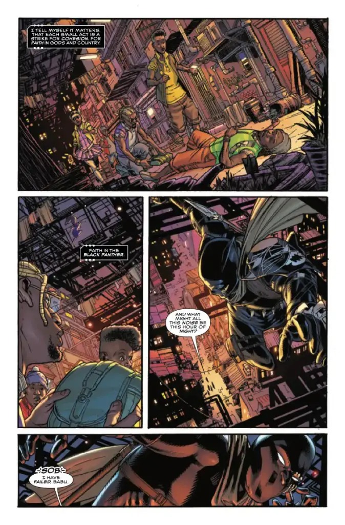 A KING WITHOUT A CROWN! Banished from the throne and a fugitive in his own homelands, T’Challa still can’t leave Wakanda without its sworn protector. A king without a crown, he finds new purpose lurking the streets and shadows of the Wakandan city that bears his father’s name, BIRNIN T’CHAKA. New direction, new villains, new creative team—get in on the ground floor of Marvel’s next smash hit!