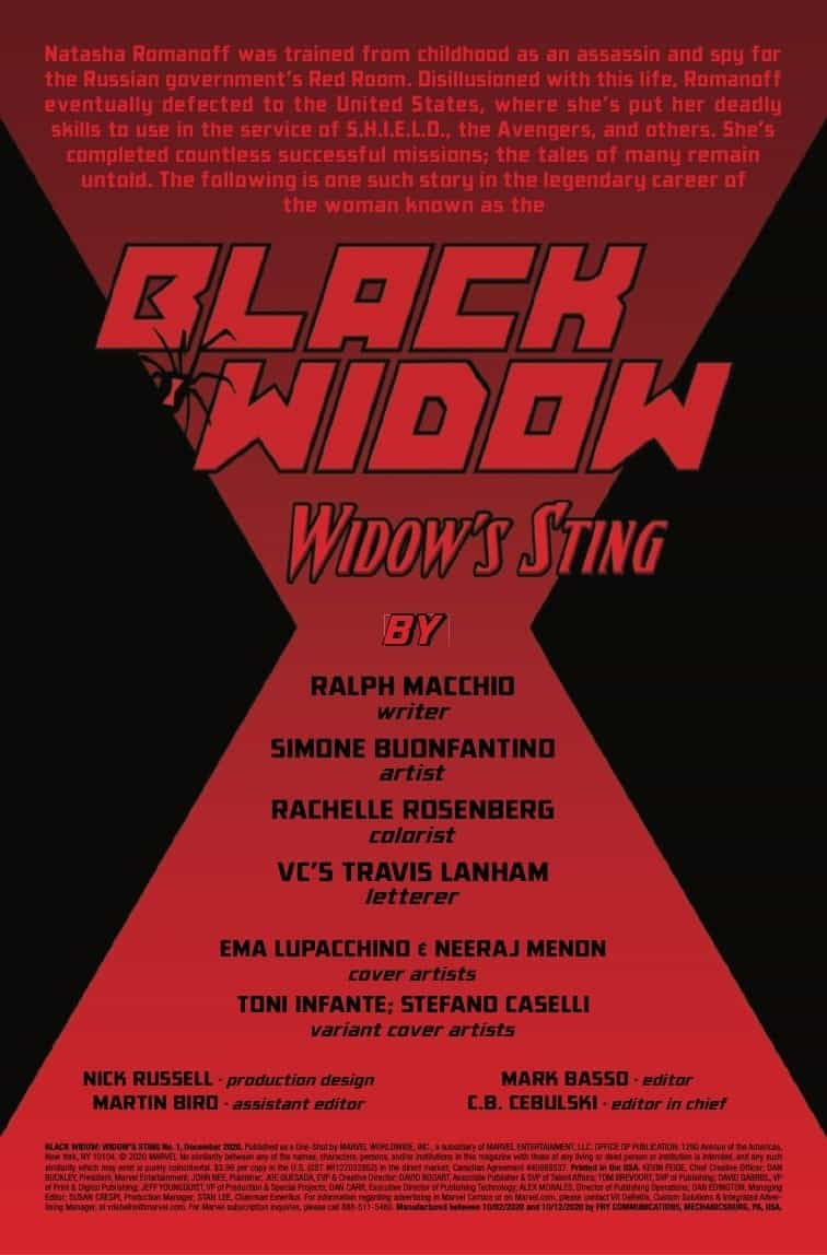 Black Widow: Widow’s Sting #1 goes on sale on October 28th, priced $3.99.