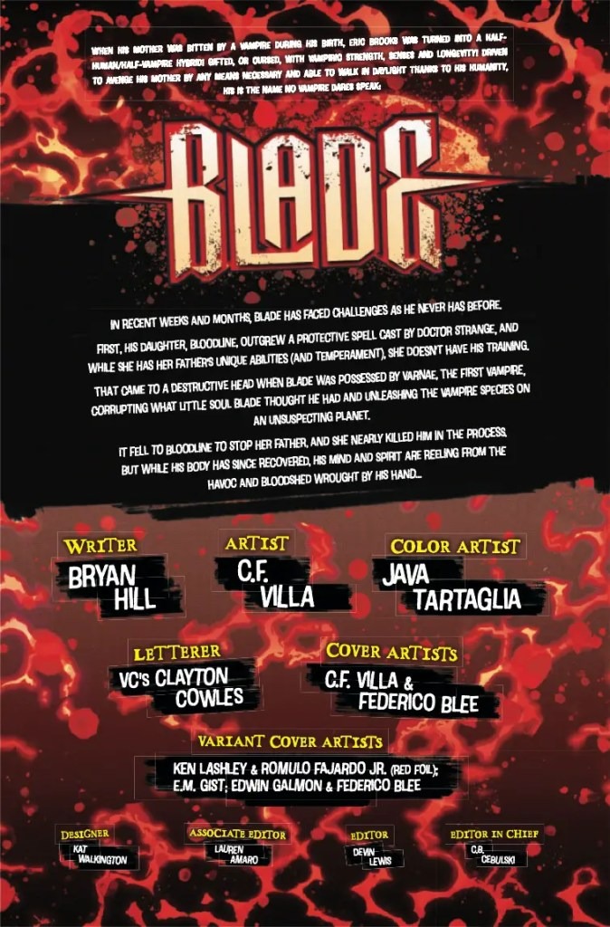 For years, BLADE has been the deadliest vampire hunter in the Marvel Universe. With an arsenal of wooden stakes, silver bullets and razor bats at his command, few have known the taste of vengeance of blood like BLADE! But after the harrowing events of BLOOD HUNT, what’s left of Marvel’s most infamous vampire? Did any of the vampire within Blade survive? Did any of the man? Find out here, at the skin-searing dawn of a bloody new Blade saga!