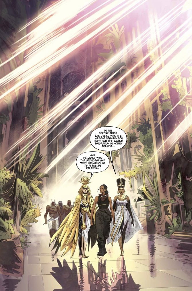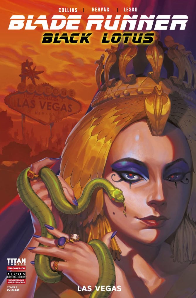 This all-new series sees the deadly Replicant combat model Elle-aka The Black Lotus Killer- continue searching for answers about her mysterious past. Elle’s quest takes her to the irradiated city of Las Vegas (later seen in Blade Runner 2049), a sand-choked ghost-town of forgotten memories following the detonation of a dirty bomb. There she finds a community of role-playing Replicants, abandoned hospitality models from the old casinos now living as embodiments of ancient Egyptian and Roman royalty. Meanwhile, Niander Wallace, smarting from his last encounter with Elle, has dispatched a seasoned kill team to bring back her head.