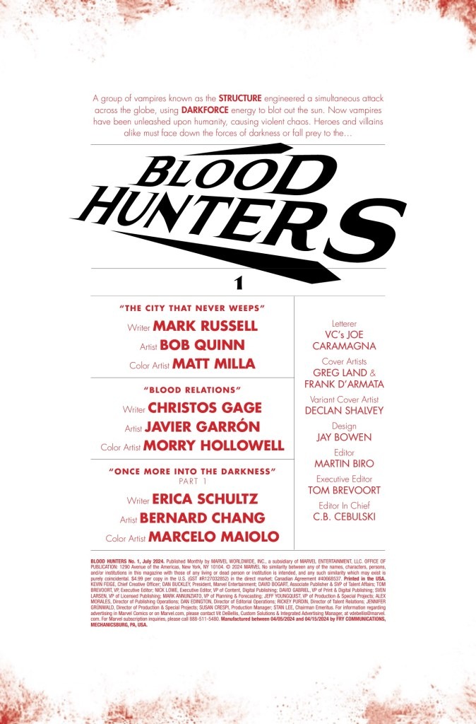 Marvel Comics kicks off its Blood Hunt tie-in series Blood Hunters this Wednesday; check out the official preview of the first issue below…