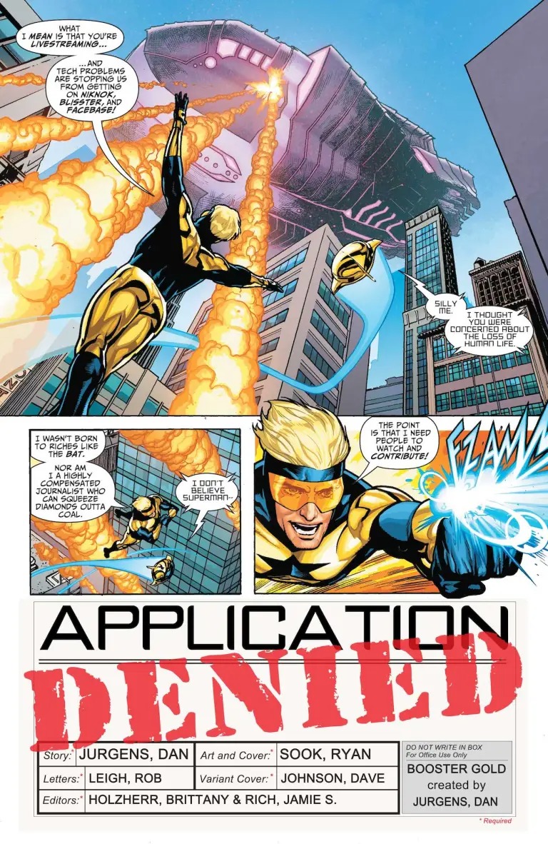 Booster Gold and Blue Beetle team up to conquer social media this week in DC’s new limited series Blue & Gold, and you can check out the official preview of the first issue here…