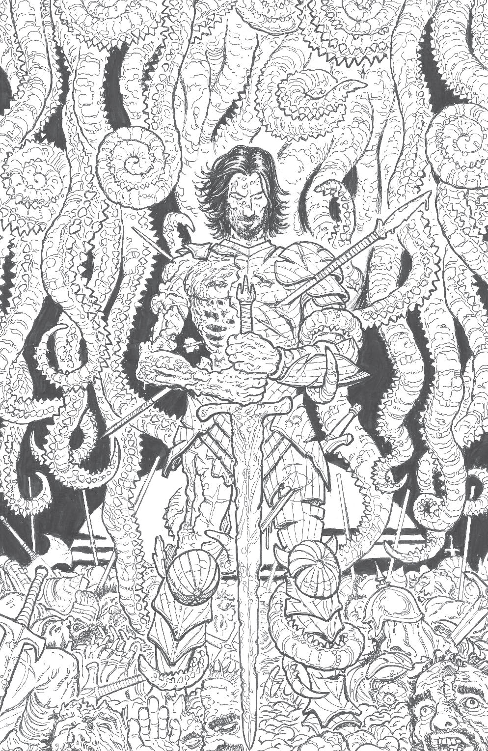 A sea of gore and devastation awaits as B, through a fateful chance encounter, safeguards the advanced and ancient realm of Atlantis as its unstoppable protector. But a sickly king serves as a symbol for the rot inside, as the security and bliss created through B’s violence is shallow… The cracks created by a secret cult might spell a monstrous end for the legendary city, one beyond even B’s ability to save. Renowned filmmaker and record-shattering comic creator Keanu Reeves joins acclaimed writer and artist Steve Skroce (Doctor Strange) for a one-shot special that fans of Lovecraftian horror would be mad to miss!
