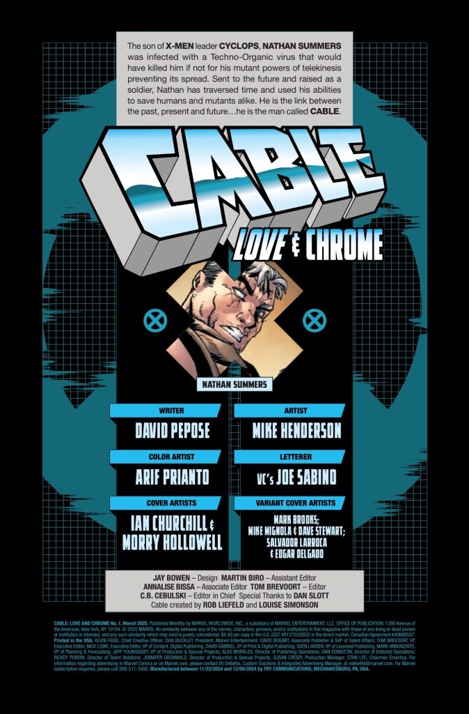 Cable: Love and Chrome #1 goes on sale on January 1st, priced $4.99.