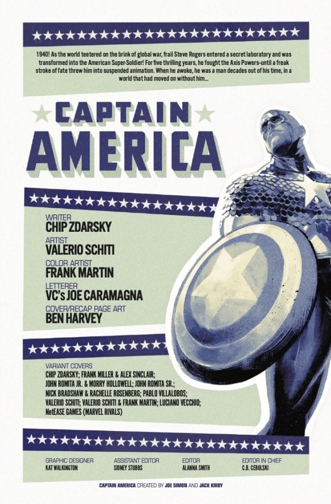 Experience the untold tale of Captain America’s first encounter with Doctor Doom as Chip Zdarsky and Valerio Schiti team up for a game-changing new era of CAPTAIN AMERICA!