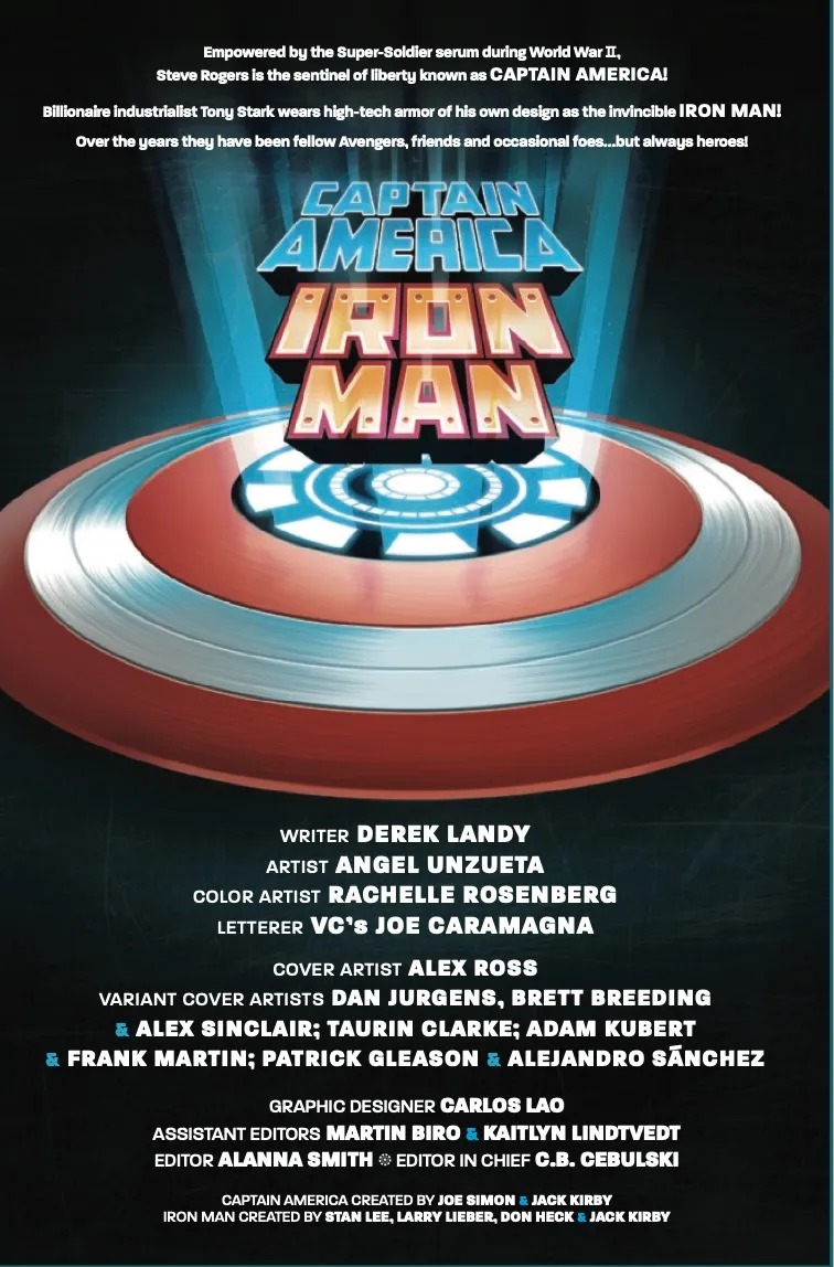 Steve Rogers and Tony Stark join forces once more this week as Marvel launches its new Captain America/Iron Man team-up series from writer Derek Landy and artist Ángel Unzueta, and you can check out the official preview of the first issue here…