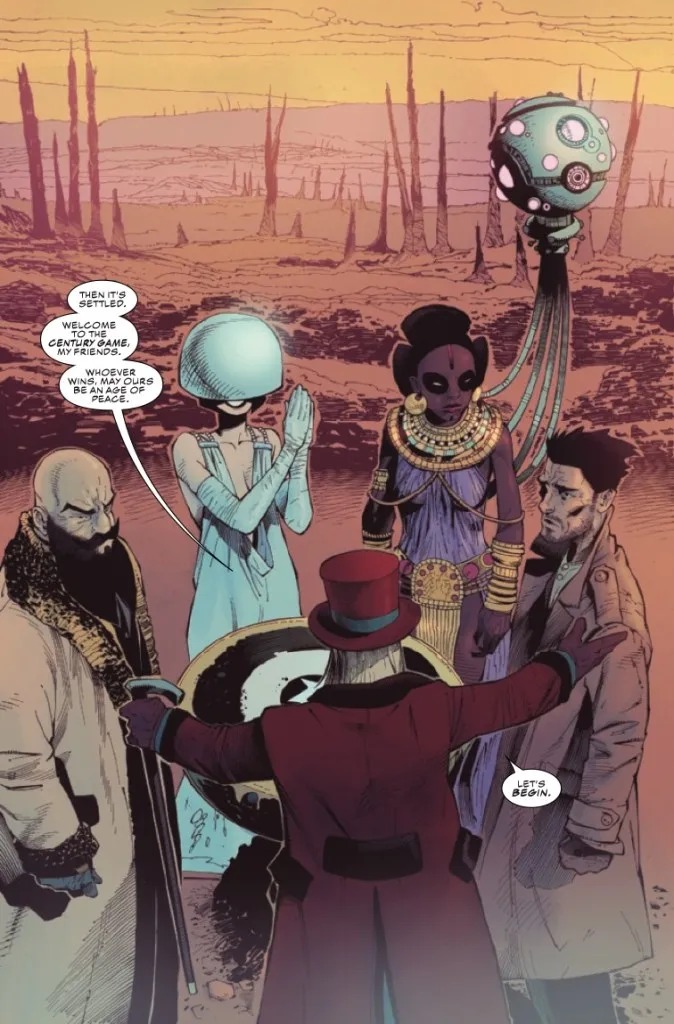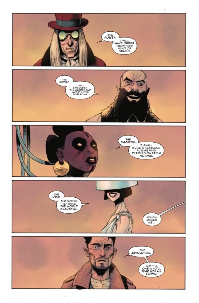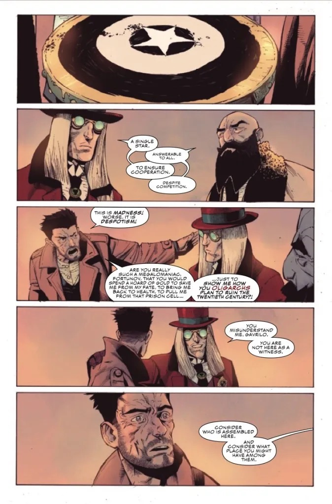 Power. Money. Machine. Love. Revolution. The 20th century progressed at a more rapid pace than any other in history but not without help from the shadows. Kev Walker joins CAPTAIN AMERICA: SENTINEL OF LIBERTY writers Collin Kelly and Jackson Lanzing to explore the origin of Captain America’s newest foe — and what the Outer Circle’s next play means for the status of the Winter Soldier.