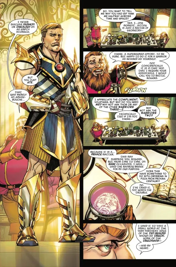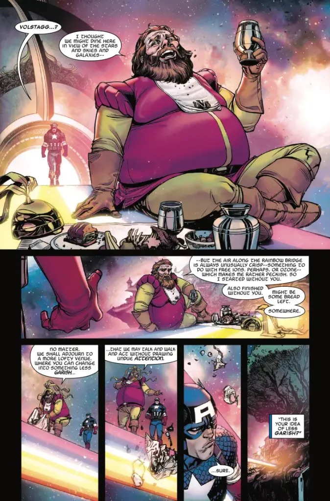 Marvel’s J. Michael Straczynski-penned mash-ups continue this week with the release of Captain America & Volstagg #1; check out the official preview below…