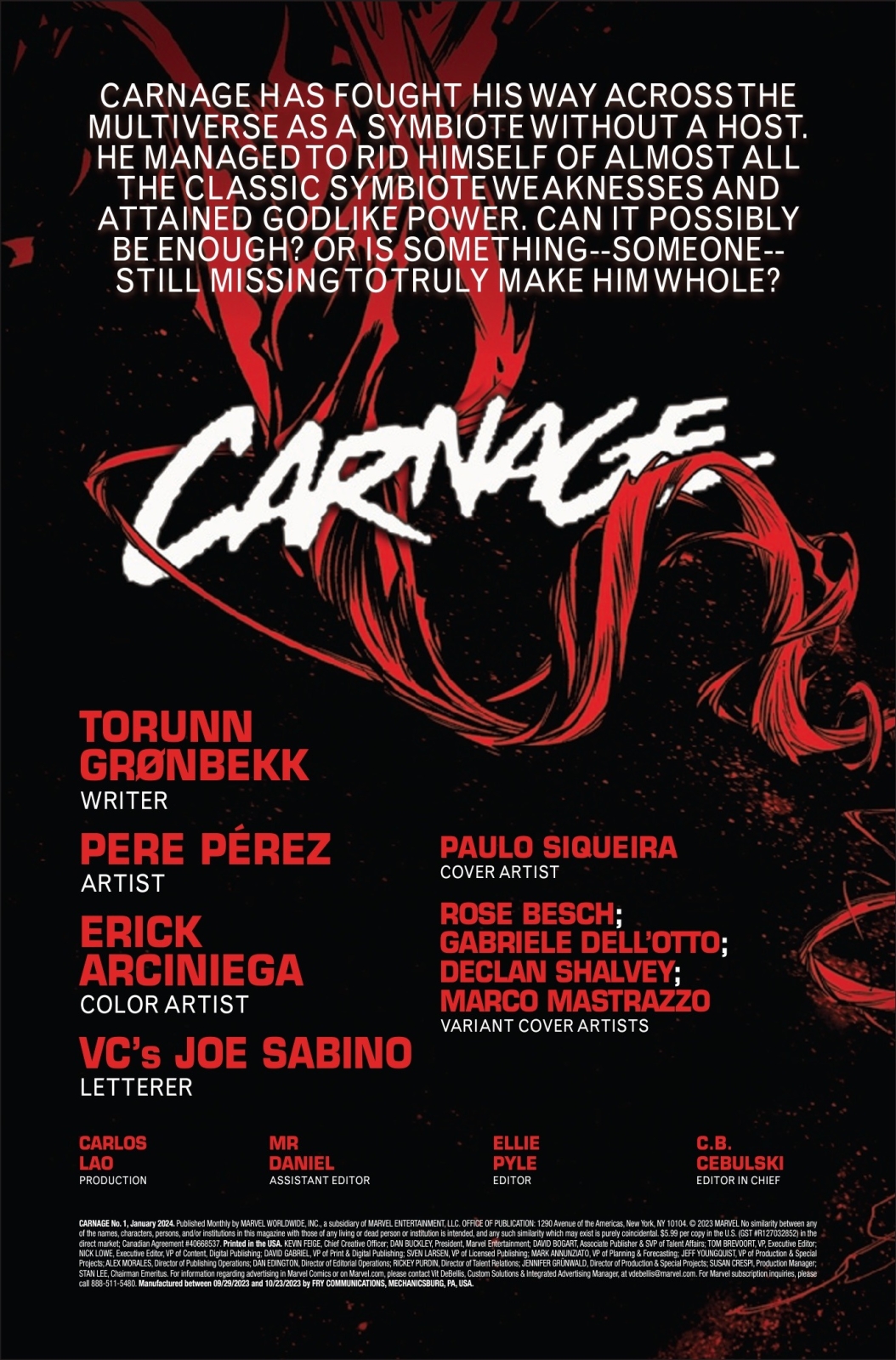 Carnage #1 goes on sale on November 22nd, priced $5.99.