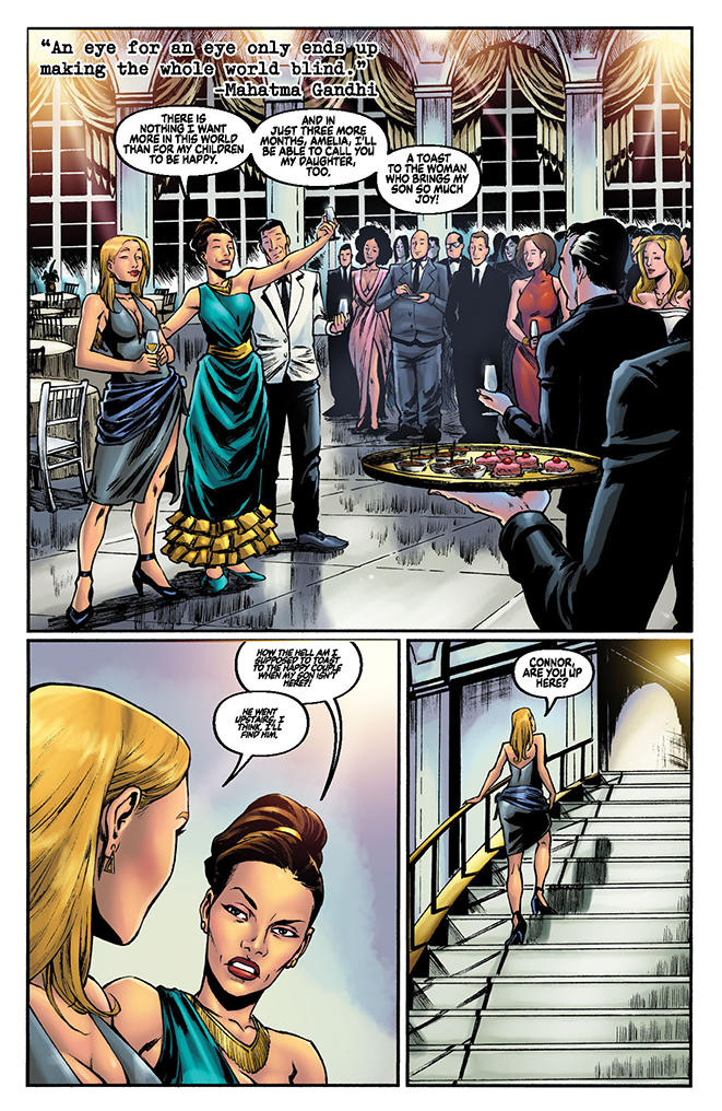 Issue #1 comes out swinging as Cherish infiltrates the corporate headquarters of Unicon. The company, led by chairwoman Valerie Nolan, had once worked with Cherish’s father. The only way Amelia will get the incriminating evidence she needs to take down everyone involved in her father’s death is to integrate herself into the staff and hide in plain sight. But things get complicated when Valerie’s son, Conrad, who Cherish has been seducing for information, becomes suspicious. Now it’s a race against time for Cherish to see if she can survive long enough to get the justice she seeks.