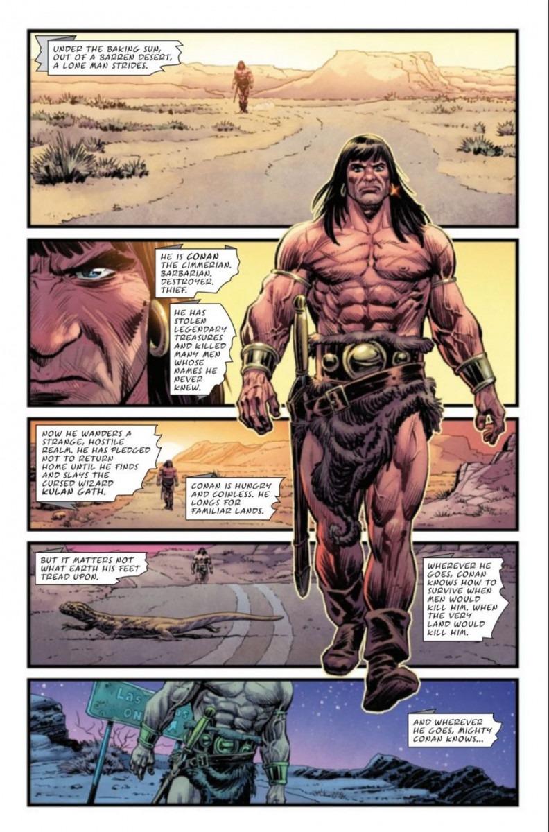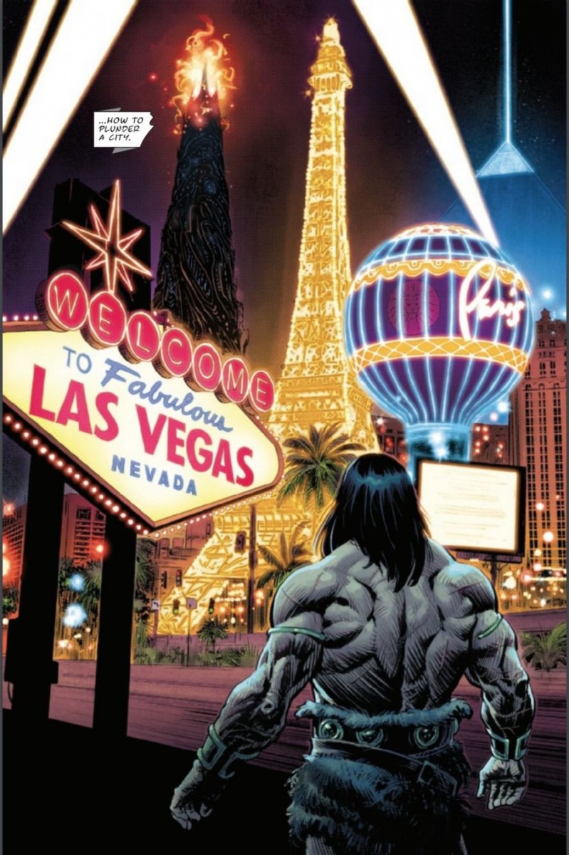 Marvel launches its new series Conan: Battle for the Serpent Crown this coming Wednesday, which sees Conan venturing through the desert to the bright lights of Las Vegas, Nevada. Check out a preview of the first issue here…