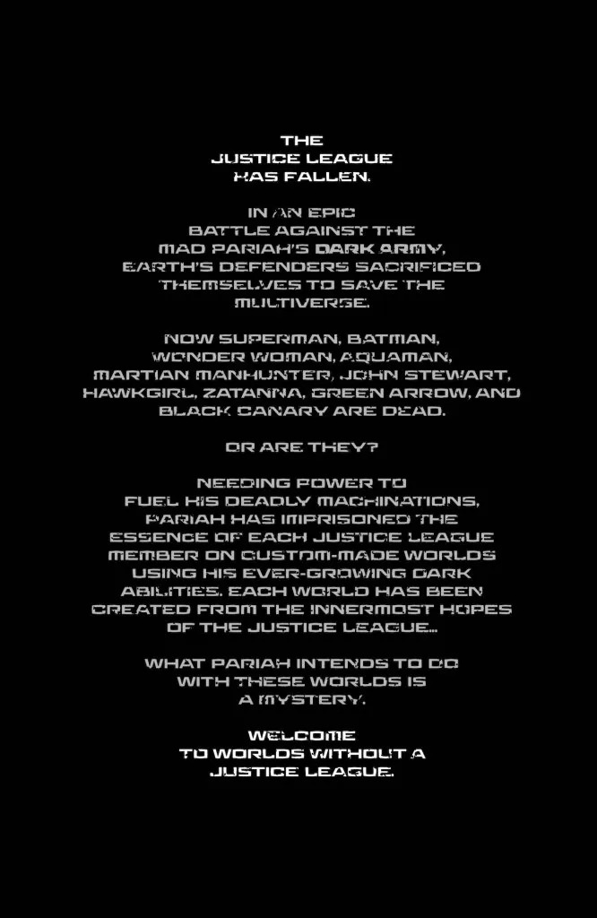 To power his weapons of war, Pariah has captured each member of the Justice League and trapped them on worlds suited to their every dream and desire…while the planets themselves slowly eat away at their respective inhabitants. When the Justice League went toe-to-toe with Pariah’s Dark Army, Green Arrow was fatally wounded by Doomsday…so how did he wake up on a world tailored to his every desire? And what dark bargain has Black Canary made to will these worlds into existence? Where there’s life there’s hope, and with that hope comes a deeper unraveling of the tapestry of the DCU’s biggest event of 2022!