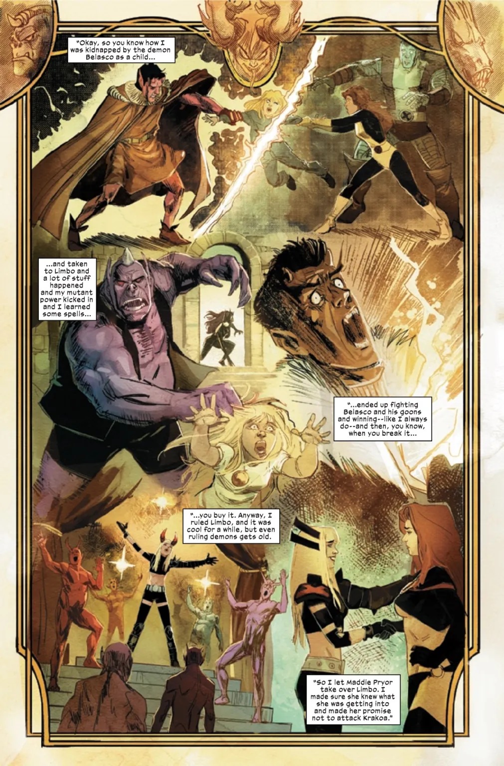 THE X-MEN ARE ENSNARED IN CHASM AND THE GOBLIN QUEEN’S DARK WEB! Chaos reigns in the streets of New York City as demon hordes pour forth from the realm of Limbo…a realm that until recently was ruled by Magik. A realm now ruled by Cyclops’ ex. Also, Havok’s ex. Also, a clone of Jean. The X-Men wade into the fray by taking on some of their darker history as the Goblin Queen returns for vengeance!