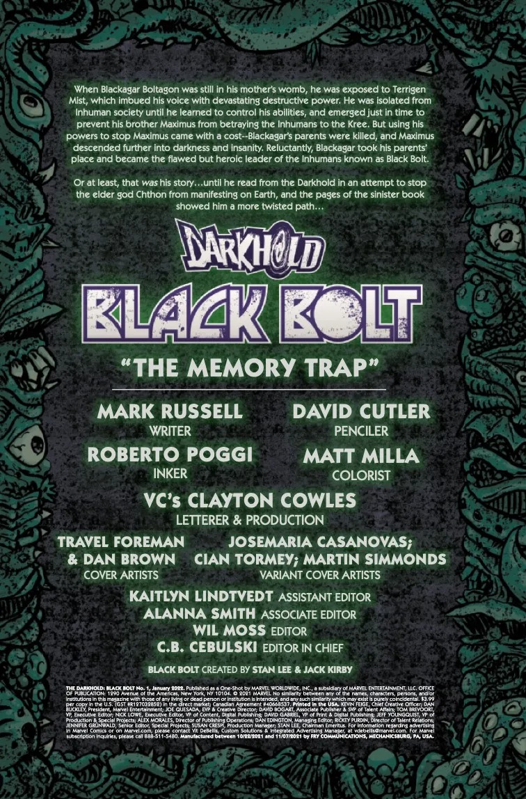 Darkhold: Black Bolt #1 goes on sale on December 1st, priced $3.99.