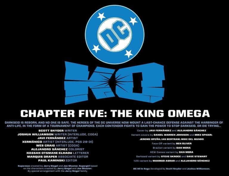 THE FINAL BATTLE FOR THE HEART OF APOKOLIPS! In the melee that started with dozens of heroes and villains vying for their chance to win the ultimate power in the universe, now only one remains! But to truly be crowned the King Omega, you must battle more than the obstacles in your path… you must battle yourself. It’s the finale to end all finales as the one true champion is crowned, the fate of all that lives hangs in the balance, and a shocking decision will bring the DC Universe to the next level. We would type more, but honestly, anything else is a spoiler — so suit up, get ready, and leap into the final round!