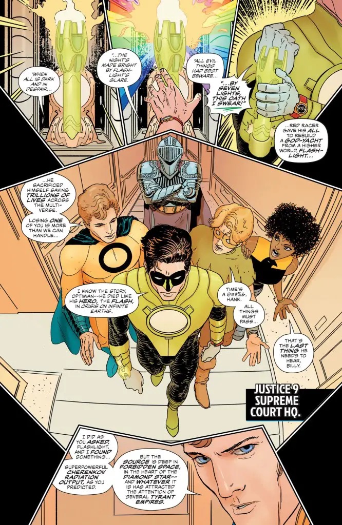 Circuit Breaker struggles to stifle his powers after the Flash of Earth-11 leaps out of the time stream and knocks them both into another dimension.