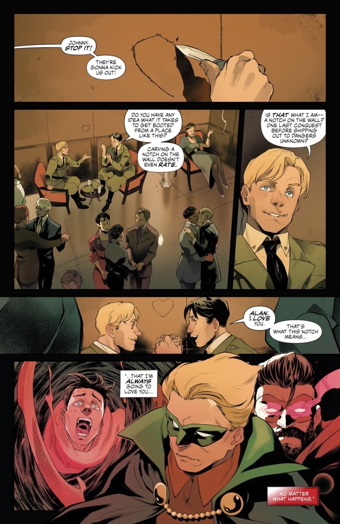 When a 100-year-old queer speakeasy-turned-bar-turned-restaurant-and-community-space in Gotham announces that it will soon be closing its doors, generations of patrons come to pay their respects — including Alan Scott, the Green Lantern. After all, this is the place where he and his first love, Johnny Ladd, long ago carved their names into the basement wall before it all went to hell… and a love lost is never a love forgotten.