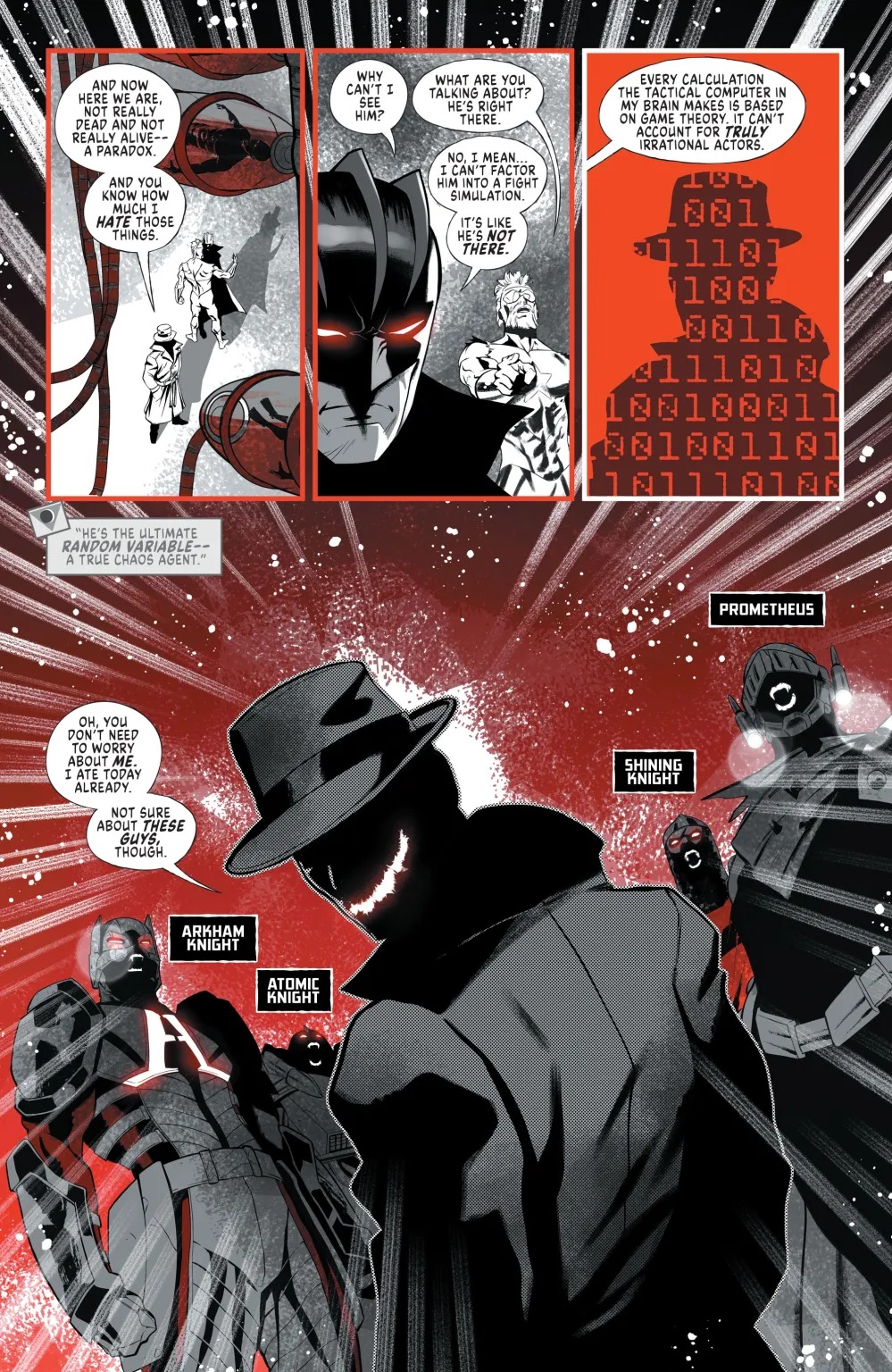 With Baron Cinder and his lieutenants kept occupied by the mother of all diversions, the team attempts a daring raid on the Blood Farm to retrieve the one person who can bring sunlight back to the world. However, they have not reckoned on the terrifying presence of the Baron’s vampire knights—familiar faces whose blades are every bit as bloodthirsty as they are. And in the backup, we learn the sad fate of the King of Cities, Jack Hawksmoor!