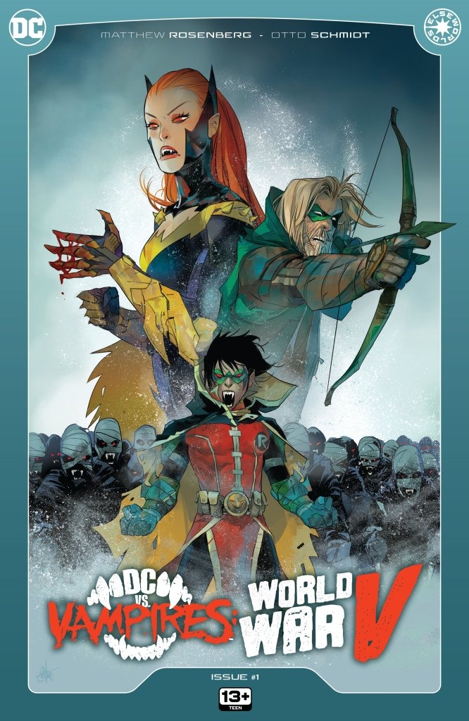 The smash-hit series returns! It’s the dead of winter, and any hope for a fragile truce between the Green Arrow-led human heroes and vampire queen Barbara Gordon’s army has been dashed by Damian Wayne and his guerrilla fighters. He’s the only one fighting back against the bloodthirsty hordes, leaving Green Arrow with a choice: Does he stand and fight or sacrifice the boy in the name of peace?