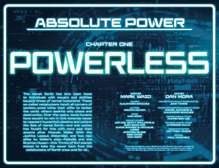THE TRINITY OF EVIL HAS WON. DC’s epic summer event kicks off with a bang, as the combined might of FAILSAFE and the BRAINIAC QUEEN has at last given Amanda Waller the ability to steal the metahuman abilities of every hero and villain on planet Earth. As chaos erupts in the streets and a massive misinformation campaign sways public opinion to her side, the founder of the Suicide Squad methodically targets each superhero dynasty one at a time, starting with SUPERMAN. But even in this darkest of hours, a resistance is forming…and BATMAN is out for vengeance. It’s a shocking blitzkrieg across the globe that is decades in the making—and will shape the course of the DC Universe for years to come! Brought to you by the superstar talents of MARK WAID and DAN MORA—it all starts here!