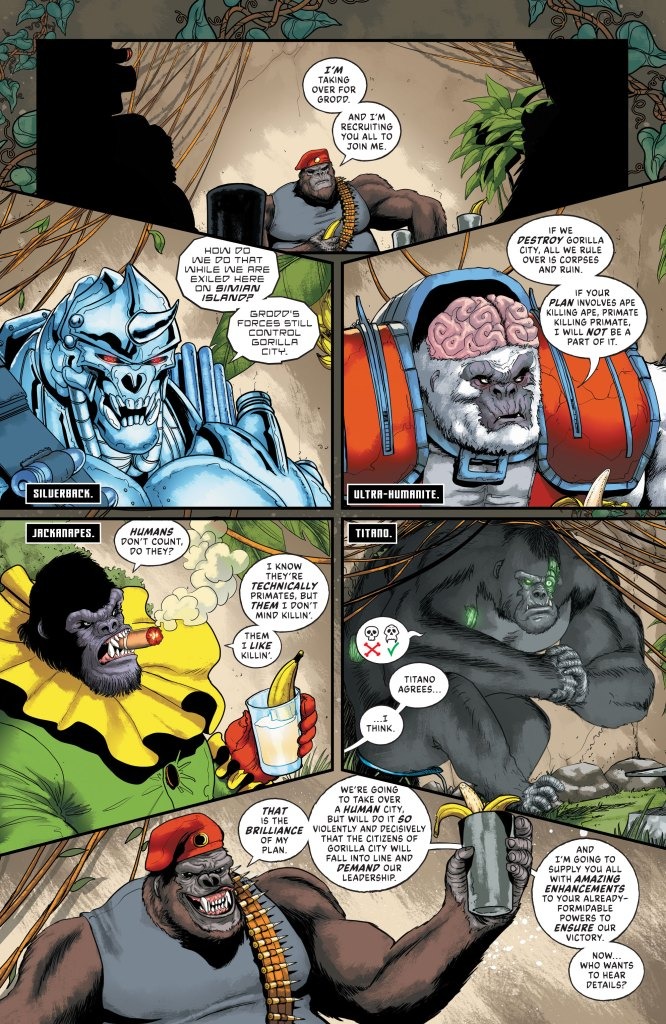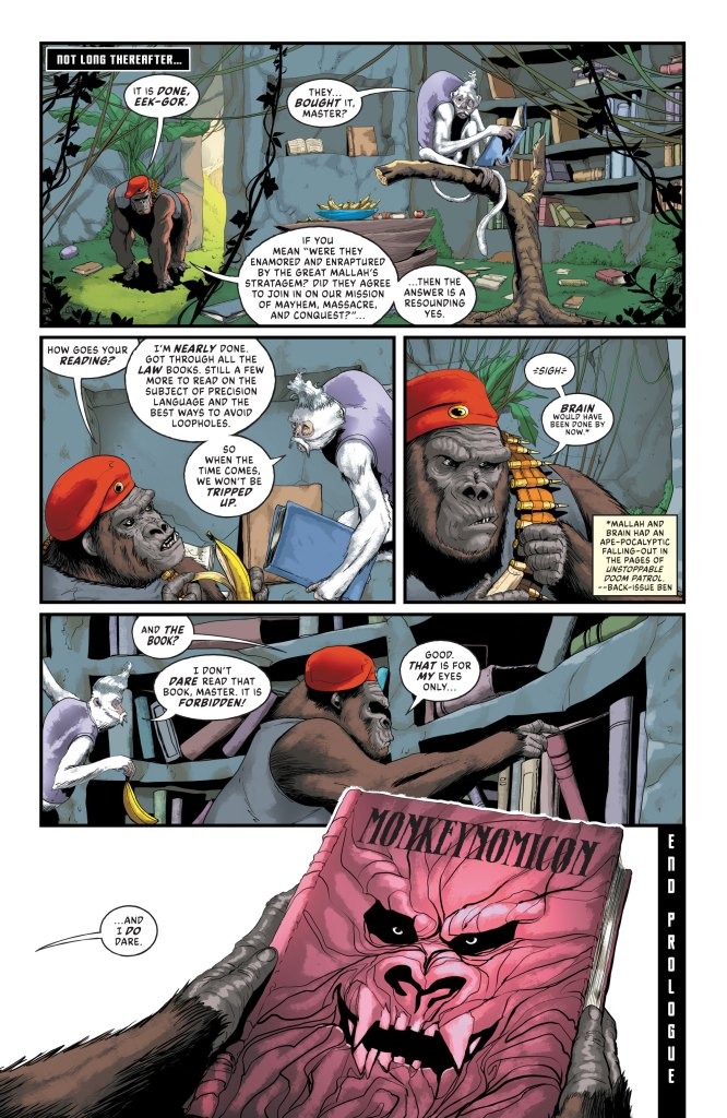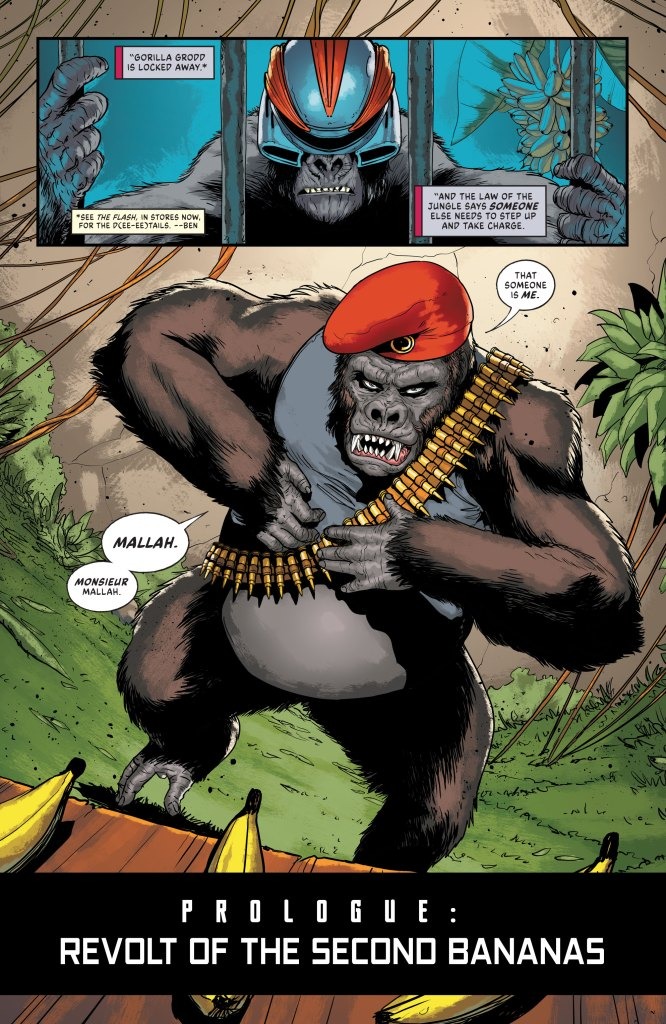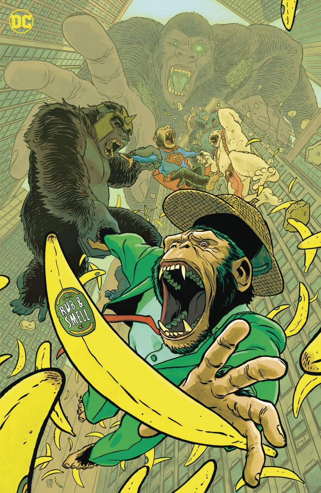 CAUTION: An ape-surd amount of bad ape puns are incoming. Please be ape-vised. Gorilla Grodd’s recent incarcer-ape-tion in the pages of The Flash has left a void that Monsieur Mallah is more than happy to fill. Ape-sembling a group of the DCU’s most sinister simians, Mallah forms the Legion of D(oo-oo-ah-ah)m, with an eye toward world domin-ape-tion. But the world won’t be conquered that easily! Enter the all-ape JUNGLE L(ee-ee)gue. Can this team of hero-eek anthropoids be the salv-ape-tion we need, or will Mallah’s team of maniacal monkeys bring forth the ape-pocalypse? Get ready to go bananas as we honor DC’s storied history with mankind’s closest relatives in this ape-ic adventure! It’s gonna be orangu-tastic, so heat up a capuchin-o, prepare a batch of chocolate chimp cookies, and get ready to r(ee-ee)d the one comic b(oo-oo)k this year that’s guaranteed to make you go…APE!
