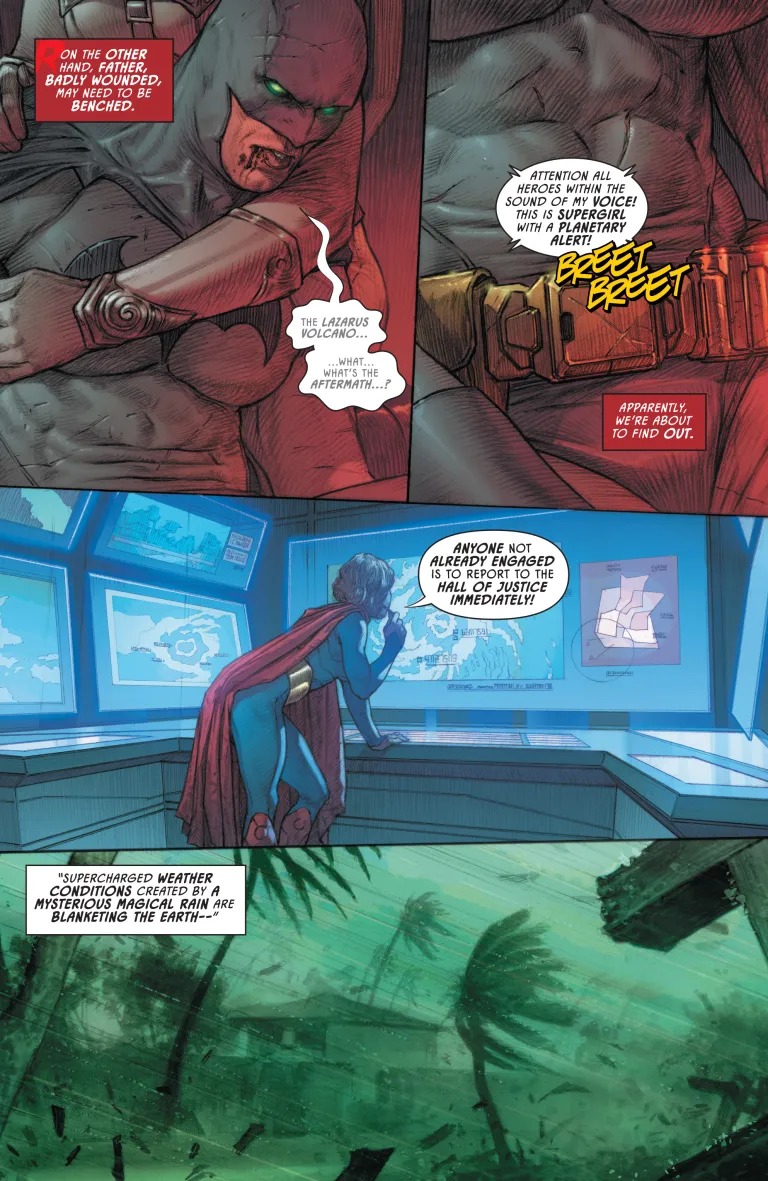 CHANGE THE WORLD. Following the explosive (literally) events of Batman vs. Robin #4, the Lazarus Volcano has erupted, spewing dangerous and transformative chemicals into Earth’s atmosphere! As these Lazarus clouds rain down upon the planet, people across the globe begin to develop strange new abilities, watch their already-extraordinary abilities change, and witness a whole host of chaos unlike anything the DCU has experienced before! It’s up to Damian Wayne to put out the distress call for whoever can still hear it: come to the ruins of the Hall of Justice and help save the world! Poison Ivy, Power Girl, Cyborg, Batman, and more answer the call…but why could the fate of all life as we know it rest in the hands of…Monkey Prince?
