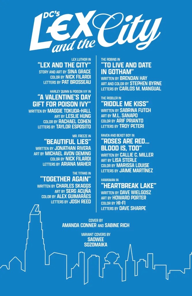 DC Comics celebrates the upcoming Valentine’s Day this Wednesday with the release of the anthology one-shot DC’s Lex and the City #1; check out the official preview below…