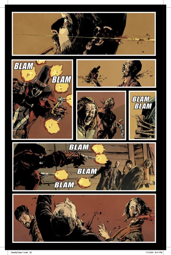 One of the most mysterious characters in the Spawn Universe is the Gunslinger Spawn. In DEADLY TALES, his true origin is finally revealed in full. Written by superstar creator JIMMY PALMIOTTI, with art by the exceptional PATRIC REYNOLDS, see the true origin of the deadly Gunslinger Spawn. From the character’s first appearance in SPAWN #174 to his adventures in the present day, all will be laid bare to the reader. The series, set in the past before the Gunslinger is pulled to the future, unravels his place in the Spawn Universe. It is a brutal tale of Old-West violence and mayhem by two of the comic industry’s finest.