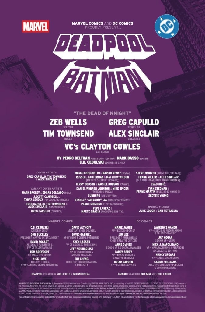 Marvel and DC kick off their big crossover event this week with the release of Deadpool/Batman #1 from Marvel Comics, and you can get yourself a sneak peek below with the official preview and cover gallery…
