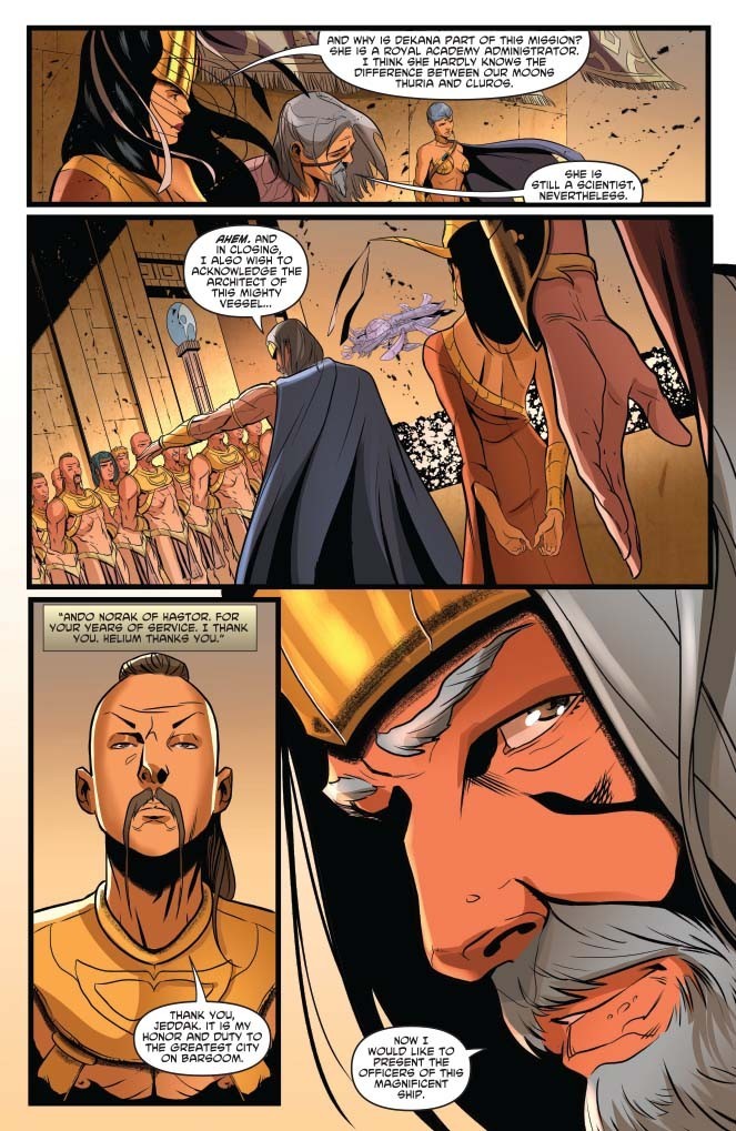 Tardos Mors, Jeddak of Helium, sends Dejah Thoris on a scientific mission to chart air currents and atmospheric density tests. But Dekana Lor, Headmistress of the Royal Academy of Helium, hints at a second secret mission to the princess. And who is this handsome Red Martian prince and why is he suddenly part of the team?