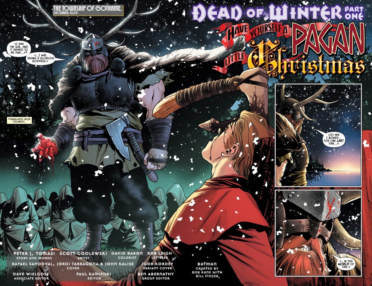 In the aftermath of “City of Bane,” the Dark Knight has found himself cold, alone, and missing one of the very foundations of his life as both Bruce Wayne and the Batman. But personal problems will have to wait-a mysterious series of deaths have been peppered throughout Gotham and it seems an element of the supernatural is at play in the form of a monstrous pagan spirit. Can Batman silence the demons within to stop the killing? Or will this silent night be for keeps?