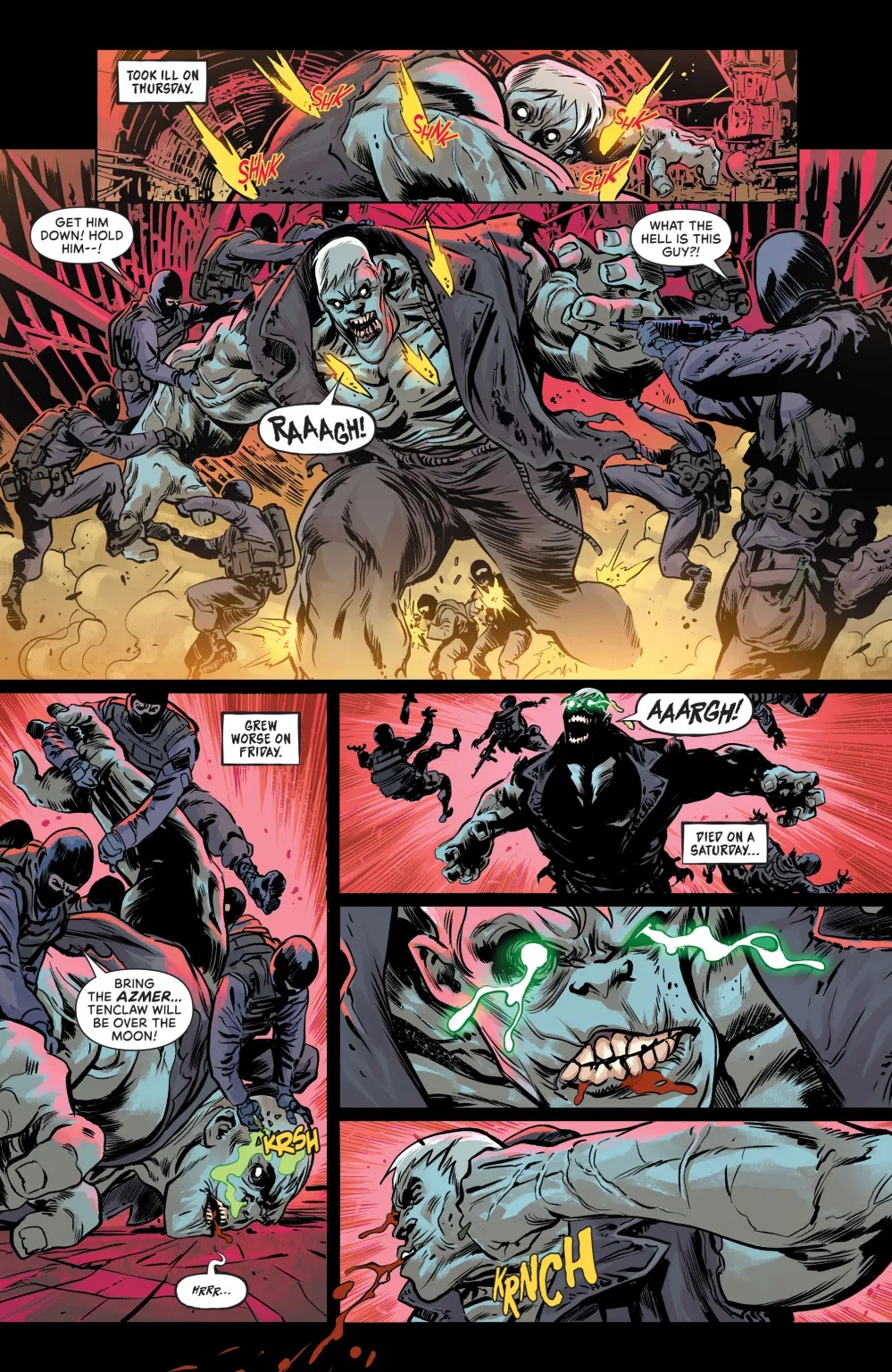 The gothic opera crashes into a crescendo as Batman goes head-to-head with an Azmer demon…unaware that it is is someone in Bruce Wayne’s life. Meanwhile, a mysterious team called the Vigil arrives to investigate the Azmer sightings—but who are the Vigil, and are they on Batman’s side? Then, in the backup: With Mrs. Freeze only a pale image of the woman Victor Fries fell in love with—what is he to do now to save her?