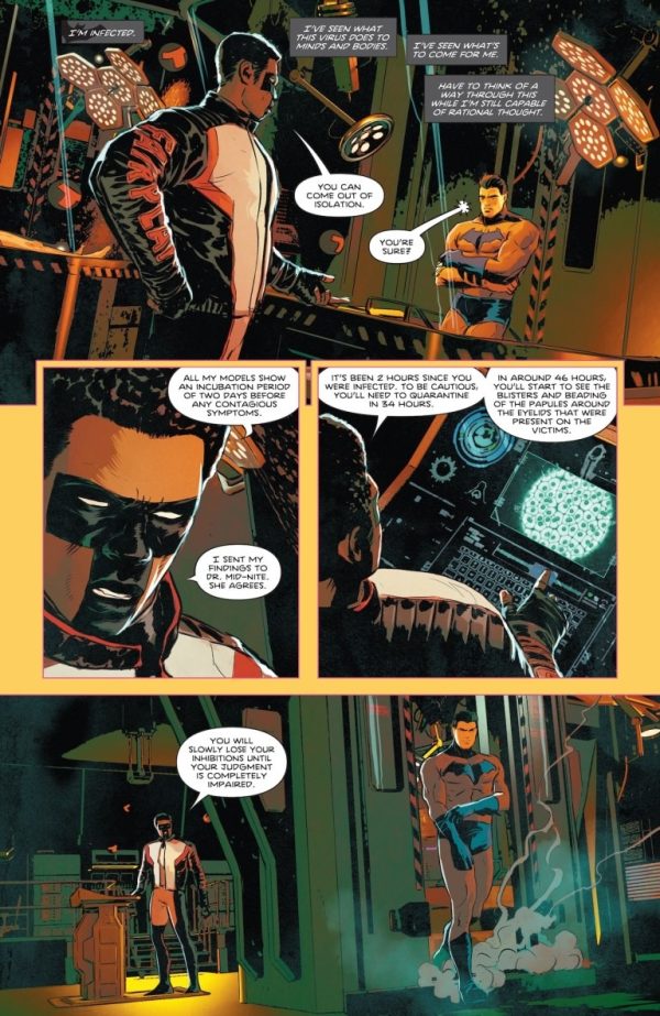 A mysterious weaponized virus has infected the Dark Knight, and he does not know how long he has left before it takes control of his body and mind. Desperate for answers and unsure how long he has to get them, Batman turns to one of the most brilliant minds in the DC Universe, Mr. Terrific.